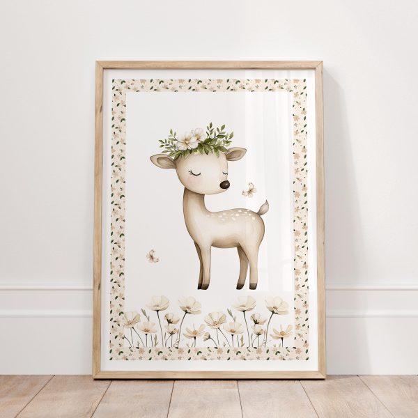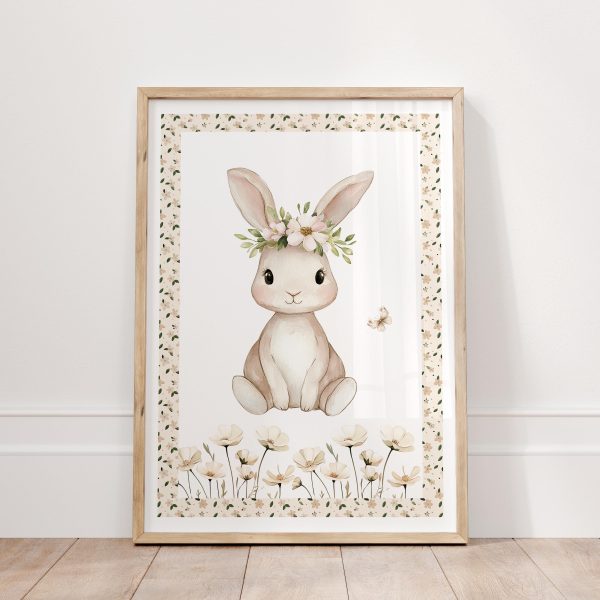 Cottagecore Girls Nursery Floral Prints Set with Bunny and Deer