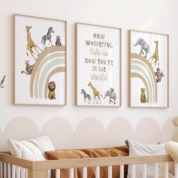 10 reviews for How Wonderful Life Is Nursery Print Set Of 3, Safari Rainbow, Playroom Wall Art, Newborn Gift, Nursery Quote Print, Safari Nursery Paintings