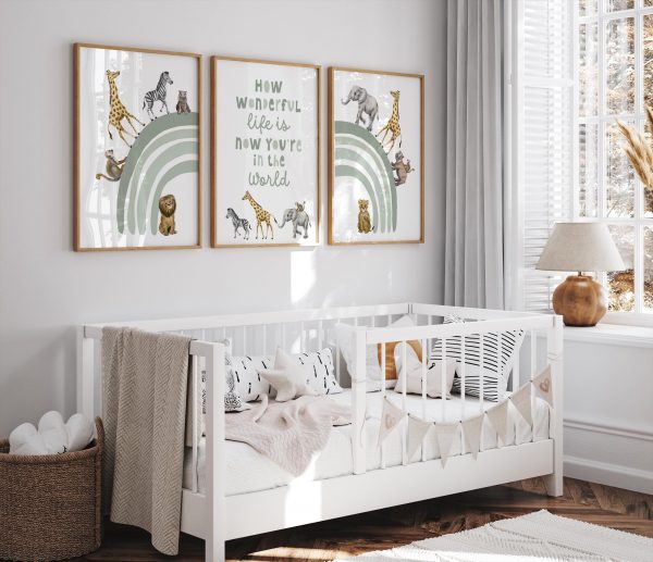 11 reviews for How Wonderful Life Is Nursery Print Set Of 3, Safari Rainbow, Playroom Wall Art, Sage Green Nursery Print, Nursery Quote Print, Kids Bedroom