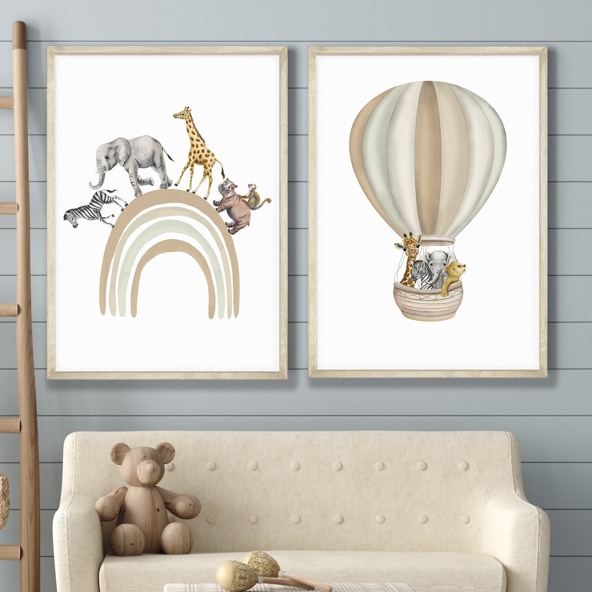 Add a touch of whimsy and adventure to your nursery with this Safari Animal Prints Set of 3 in a charming sage green safari theme. These sage green Nursery Posters are perfect for adding a playful Boho touch to your little one’s space. Featuring a combination of beloved safari animals including elephant, giraffe, zebra, monkey, lion, lioness, and hippo strolling along rainbows, this set also includes a delightful quote ‘ How wonderful life is now you’re in the world’. Create a Safari Nursery Decor that sparks imagination and joy with these beautifully illustrated prints. Perfect for both boys and girls, these posters will be a delightful addition to your nursery decor. If you would like alternative colours, please reach out and will be happy to accommodate.