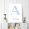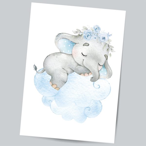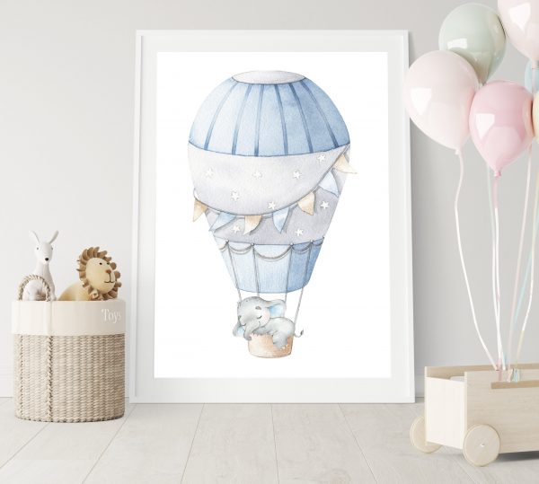 Bring life to your walls with our adorable Personalised Elephant Nursery Wall Art for Baby Boy This Personalised Elephant print set features three prints with hand drawn illustrations of baby elephant sleeping on a fluffy cloud, Large initial with blue foliage and Elephant going on an adventure in his Hot Air Balloon. The soft blue and grey shade of colours used to create these adorable traditional elephant nursery art prints makes this set a perfect choice for a baby boy’s nursery, toddlers bedroom or playroom. These cute nursery Elephant wall are personalised with your little one’s Name or if you have something else in mind pop a message through, we love to chat.