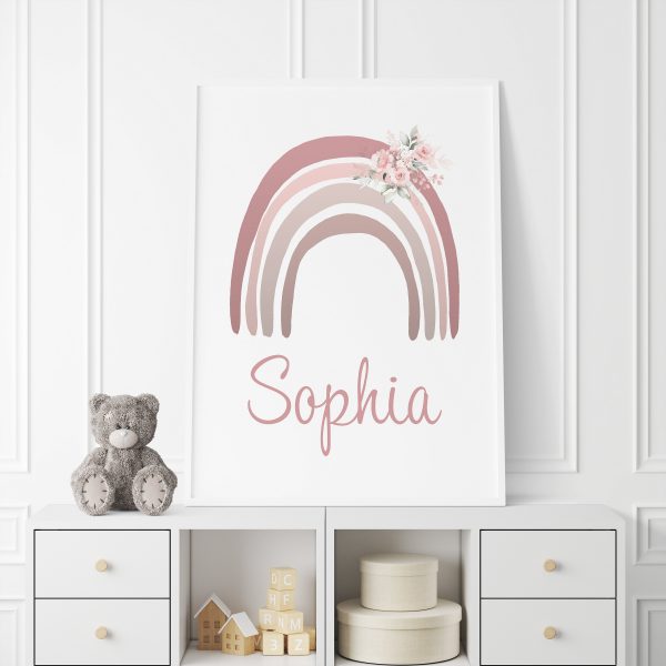 Create a dreamy ambiance in your little one’s room with this Personalised Fairy Garden Wall Art Print set of three. One print showcases a delightful rainbow in soothing pink shades, personalised with your child’s name. The remaining two prints feature enchanting magical flying fairies surrounded by pretty pink florals. Ideal for a little girl’s bedroom or a baby girl’s nursery, add a touch of whimsy and sparkle with this charming wall art set. This set is a must-have for any little girl’s room or baby girl’s nursery. Brighten up their space and ignite their imagination with this whimsical and personalised wall art collection.