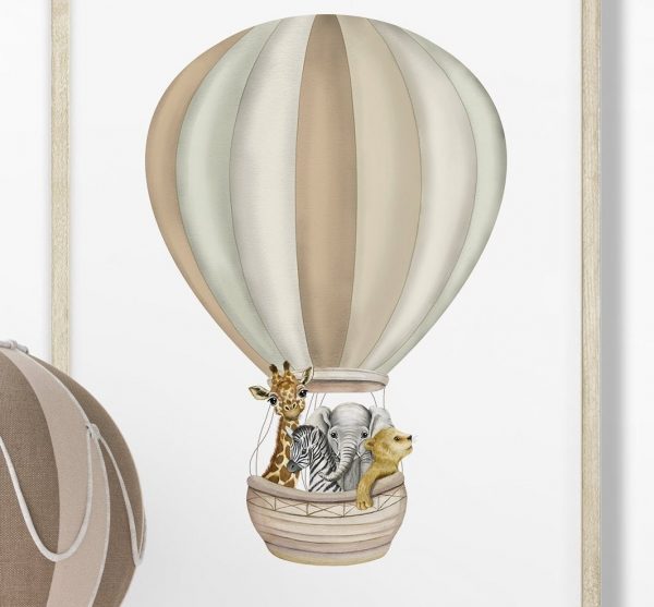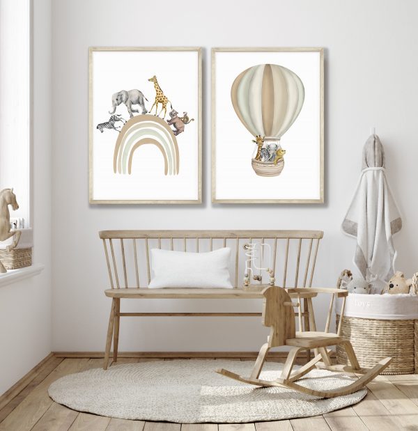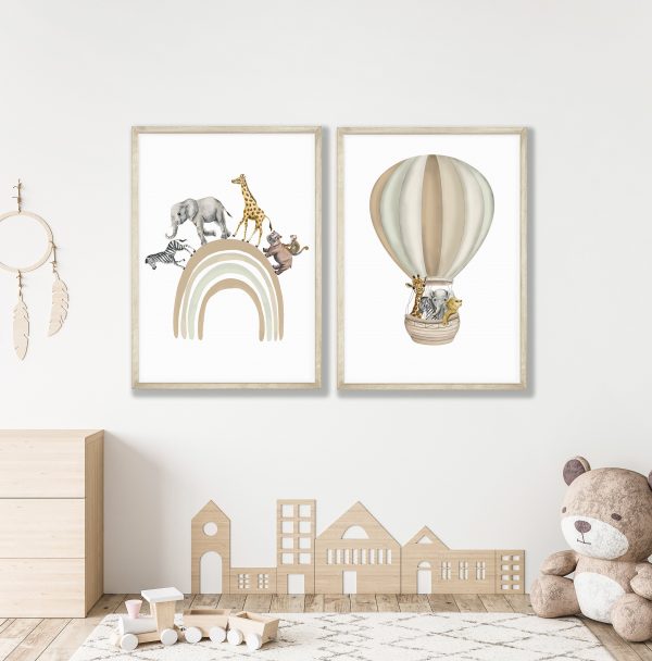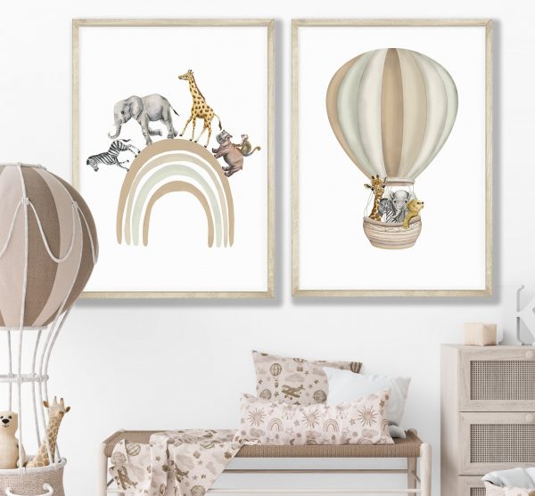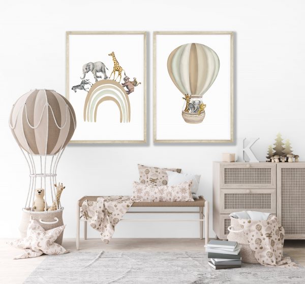 7 reviews for Safari Animal Prints Set of 2, Safari Rainbow Nursery Decor, Beige Nursery Prints, Hot Air Balloon Safari Animal Poster, Playroom Wall Print