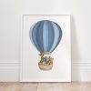 Blue Rainbow Safari Nursery Prints – Hot Air Balloon Art with Safari Animals