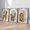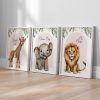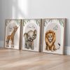 Transform your little one’s nursery or playroom into a whimsical safari wonderland with this charming set of 3 prints featuring a playful elephant, elegant giraffe, and majestic lion.