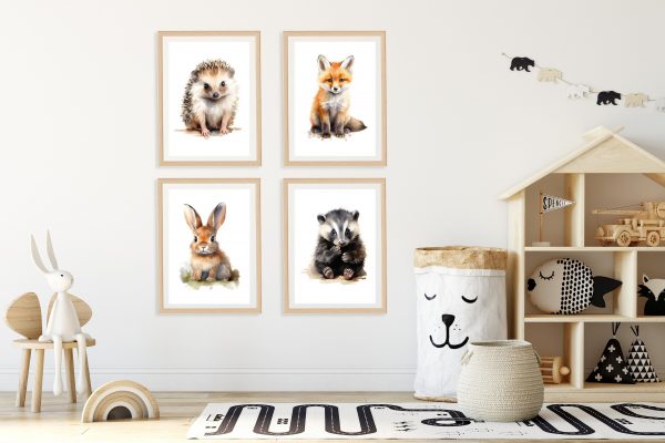 Bring life to your walls with our wonderful Woodland Nursery Prints Set of 4 This Personalised Woodland Animals print set features four prints with illustrations of our Fox, Badger, Rabbit and Hedgehog. The neutral shades of colours used to create these adorable Forest Nursery Prints makes this set a perfect choice for Gender Neutral Woodland Theme children’s bedroom, your little one’s nursery, toddlers bedroom or kids playroom.